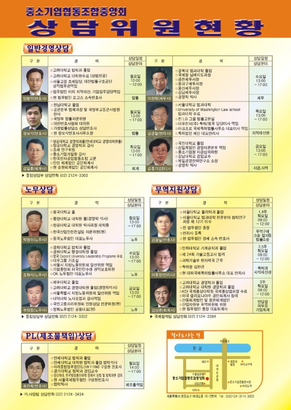 중소기업협동조합중앙회에서는 기업경영과 관련한 각 분야의 외부 전문가를 위촉하여 중소기업 경영애로상담을 무료로 실시하고 있사오니,
