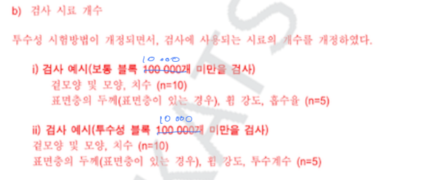 참고로 위 이미지와 같이 해설서 b)검사시료개수의 예시는 '10 000개 미만'이 맞습니다. 오타임을 국가기술표준원 담당자에게 확인 하였습니다.