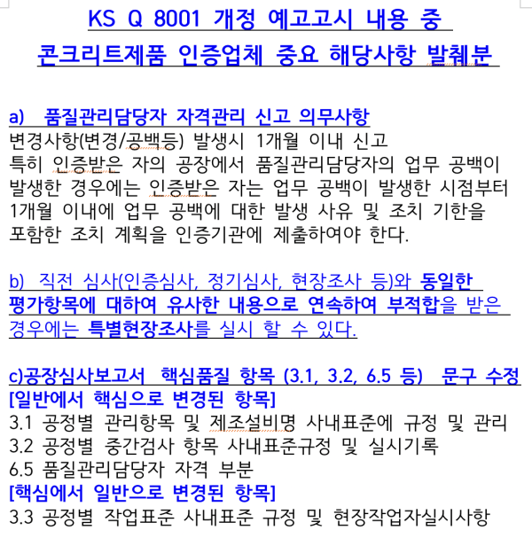 2023년 9월 8일 본 연합회에서 주최한 콘크리트블록 제품 관련 세미나시 안내 드렸던 ‘KS Q 8001 개정(안)'관련 내용 입니다.